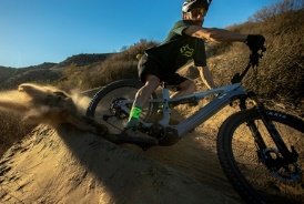 Photo 2 The Spectral:ON’s “mullet” wheel-sizing sets it apart. The 29er front wheel plows through the techy bits in complete control while the smaller 27.5 rear wheel and short rear end beg you to get slideways. Copyright: Canyon Bicycles