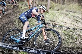 Photo 4 Mathieu in action: The special bright blue “MVDP” colour scheme is only available on this limited edition frameset. Copyright: Canyon